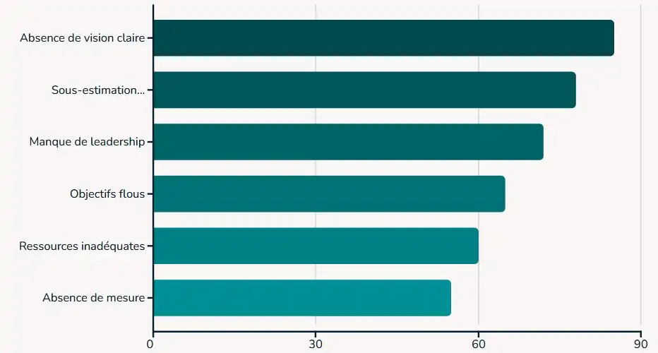 Des consultants ont observé que l’échec vient fréquemment de déficiences structurelles dans la conduite du projet : objectifs flous, absence de plan d’actions détaillé avec des échéances et responsables clairs, ou encore pas de mécanisme de gestion des risques.